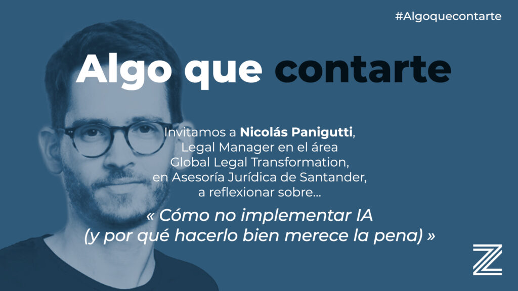 Bajo el título «Como no implementar IA (y por qué hacerlo bien merece la pena)», Nicolas Panigutti, Legal Manager en el área de Global Legal Transformation dentro de la Asesoría Jurídica de Santander, nos ofrece su visión, a través de la historia de Carmen, sobre cómo la adopción de la IA en el ámbito legal no comienza con la tecnología, sino con entender los procesos y las personas.